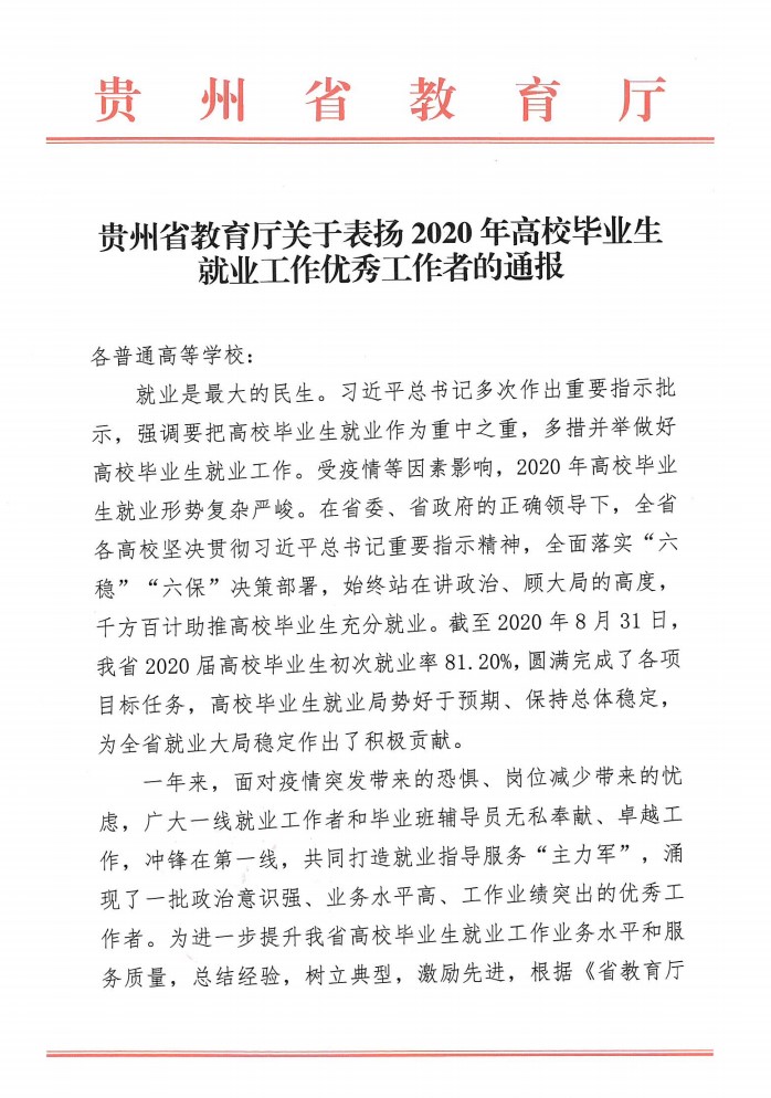 喜报 | 贵工商四位教师荣获2020年贵州省高校毕业生就业工作优秀工作者称号!