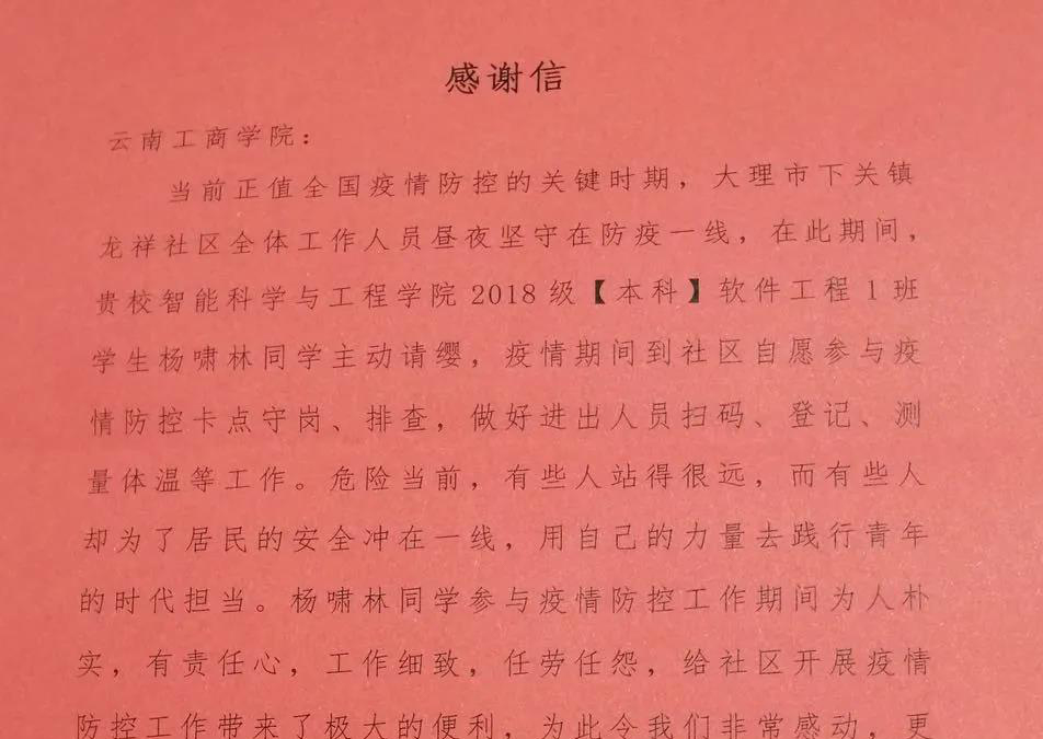 纸短情长 云南学校收获“抗疫”感谢信