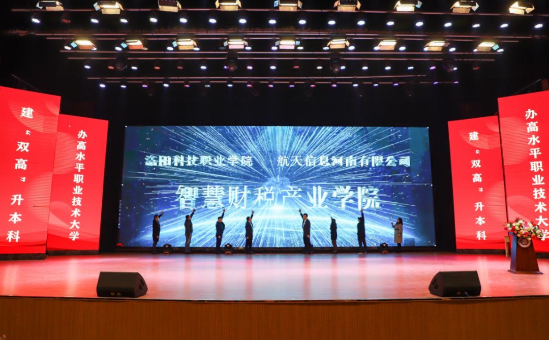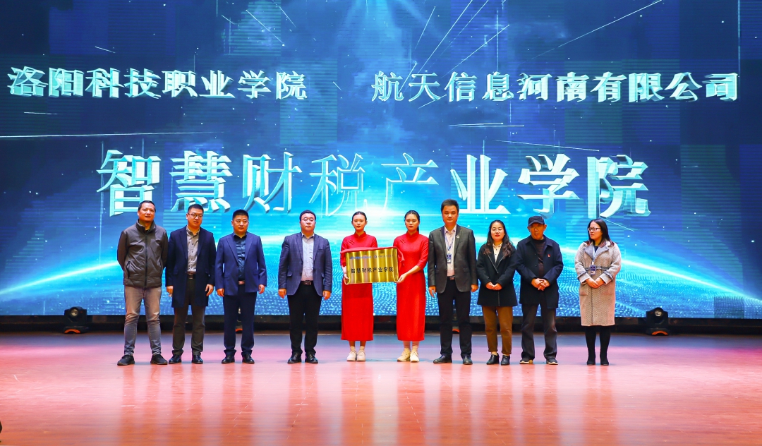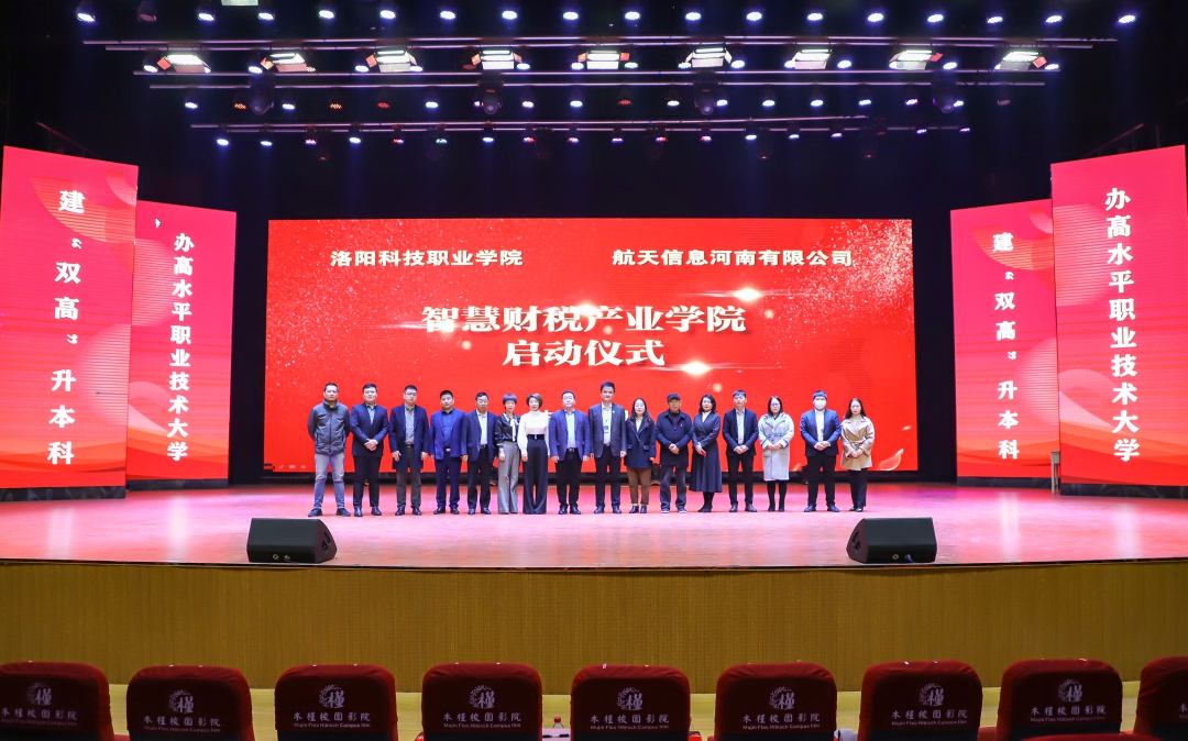 11月3日,洛阳学校智慧财税产业学院启动仪式在新民学堂举行。航天信息河南有限公司总经理李涛及管理团队、河南恒生仁财税集团董事长陈雪平、河南众创企业服务集团总经理齐萍、河南新兰德教育科技集团有限公司董事长牛前进、河南杰盛会计师事务所所长刘瑞华、洛阳智友信息科技有限公司总经理赵红伟,与学校副校长赵兵、经济与管理学院院长高百宁及经济管理学院教职工、学生代表等一起参加了此次启动仪式。
