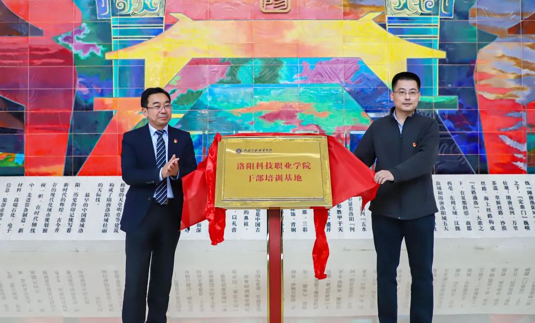 随后,刘丽彬校长、王统辉馆长分别作为校馆代表,共同为洛阳学校干部培训共建基地揭牌。