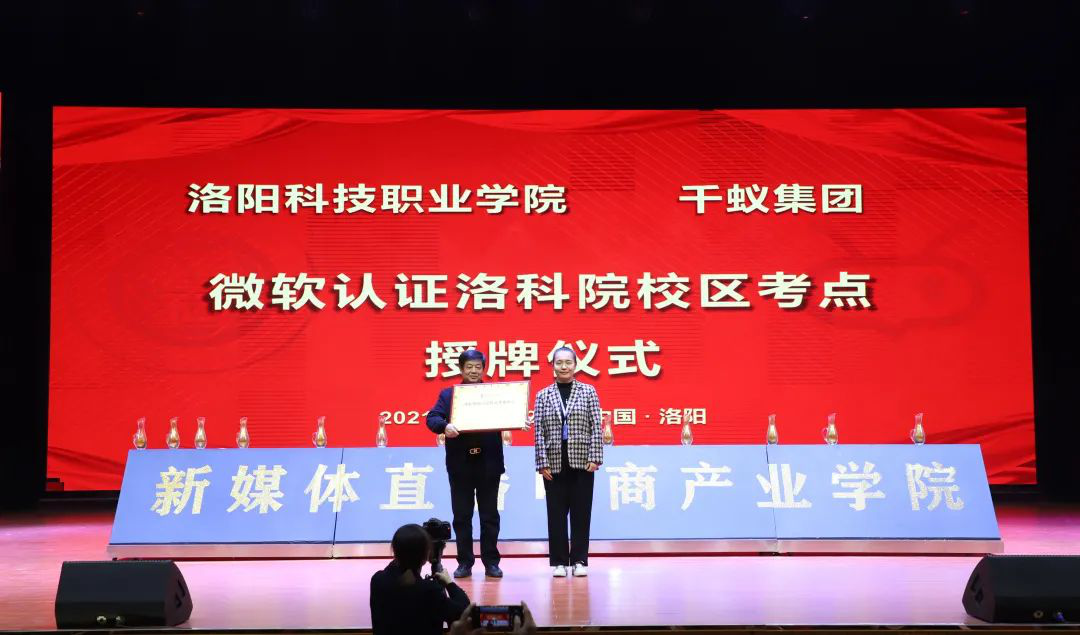 微软公司河南运营中心主任黄贻彬教授为微软国际认证洛阳学校院校区考点授牌。微软国际认证,是微软公司设立的全球性技术认证,证书被全世界120多个国家认可。微软国际认证走进洛阳学校,将为学生们提供更多的学习资源。