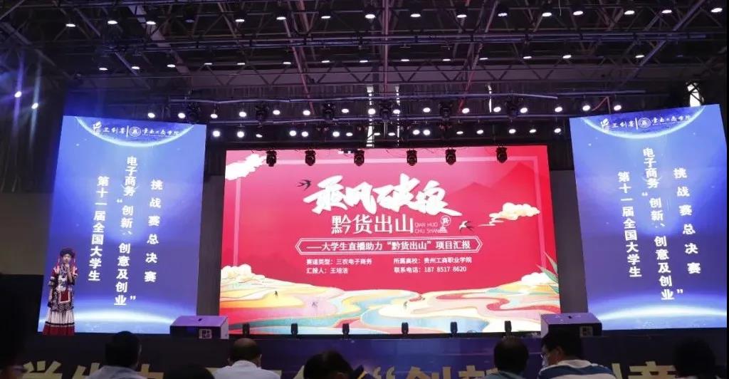 本届三创赛报名参赛团队超过100000支,遴选出来自全国32个省、自治区、直辖市及澳门特别行政区在内的共185支优秀国赛项目团队,数千余师生参加。历经校赛、省赛层层选拔,贵州工商职业学院“黔货出山 乘风破浪”项目作为贵州省参赛队伍之一,与来自全国各大本专科院校的佼佼学子们同台竞技。经过激烈角逐,项目团队成员在路演和答辩环节表现优异,得到了现场评委的高度认可。