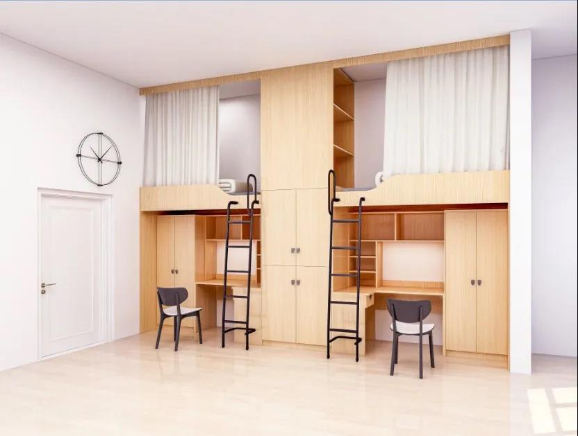 升级宿舍为四人间,每间宿舍都包含独立卫生间和阳台,每个人有自己独立的柜子,四人间为上床下桌模式,小仙女们不用担心自己的化妆品没地方搁,男孩子也不用怕自己心爱的球鞋沾灰啦。热水直通!配套洗衣机、空调等电器,各类设施配置齐全,为你带来全新的住宿体验。