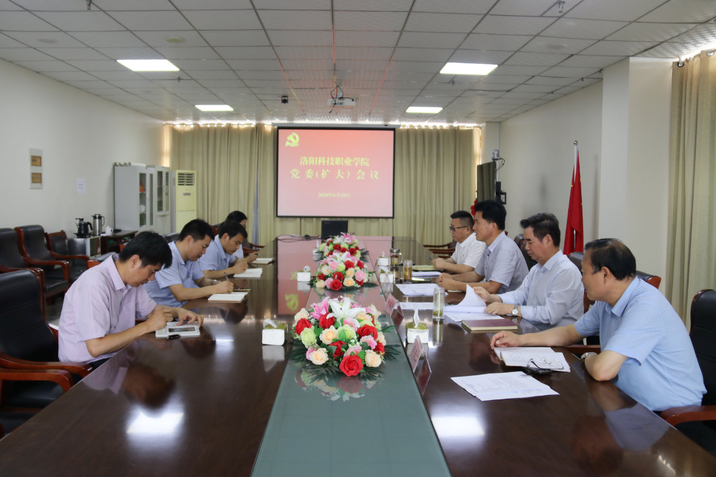 6月19日上午,洛阳科技职业学院校党委在信息楼九楼会议室召开党委会(扩大),理事长、执行校长、党委书记赵联章,校长、党委副书记牛耀堂,校长助理、党委学工部部长李进生,党委委员李广勇、孙应会出席会议,校监事会主席杨建宏,周春成、柳进芳列席会议。会议由赵联章主持。