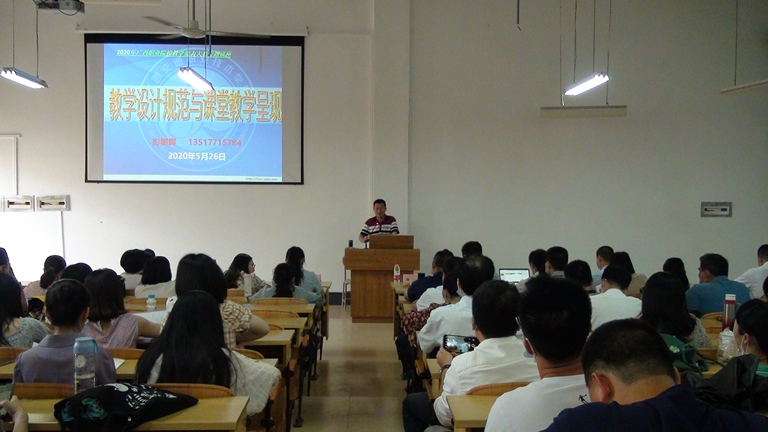 为进一步做好学校2020年广西职业院校教学能力大赛的准备工作,提升学校教师综合参赛实力,增强教师参赛信心,5月26日下午,广西英华国际职业学院邀请广西交通职业技术学院二级教授、硕士生导师、广西师范大学客座教授彭朝晖作《教学设计规范与课堂教学呈现》主题培训。学校各二级学院院长或分管教学工作的负责人、教务处、教学秘书、教研室主任、全体教师等参加培训。