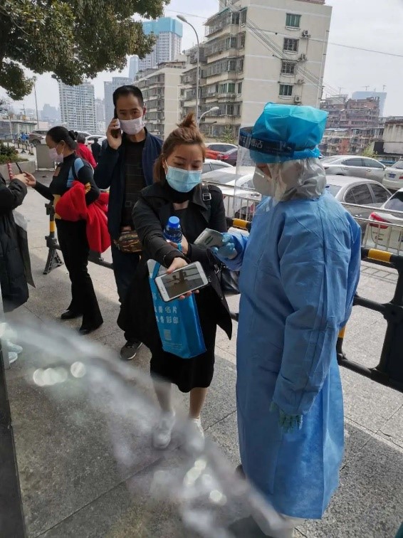 在门诊侧门的防疫点,我张口便是熟悉的日常询问:“到医院来干嘛?是要看病的还是从这里路过的?”“如果是过路人员请绕行。”然后就是提示大家戴好口罩,扫码测体温进入医院。
