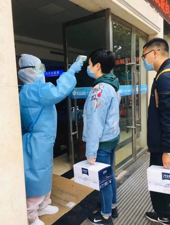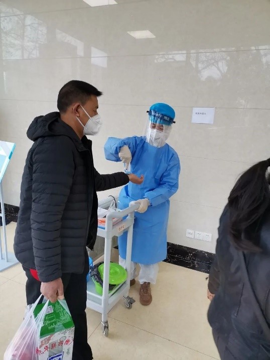 在志愿者工作中,很多病患或者家属在我们测量体温时,会对我们说一句简单的谢谢,一句简单的“谢谢”却让我觉得很暖心。还有很多小朋友对于全副武装的我们,会露出一副害怕的表情,但也会在家长的指导下怯生生地伸出小手让我们测量体温。有时候也会遇到患者的不理解,我们会努力的进行抗疫宣教,“让大家理解我们这些看似繁琐无用的工作,对于控制疫情发展的重要性。”