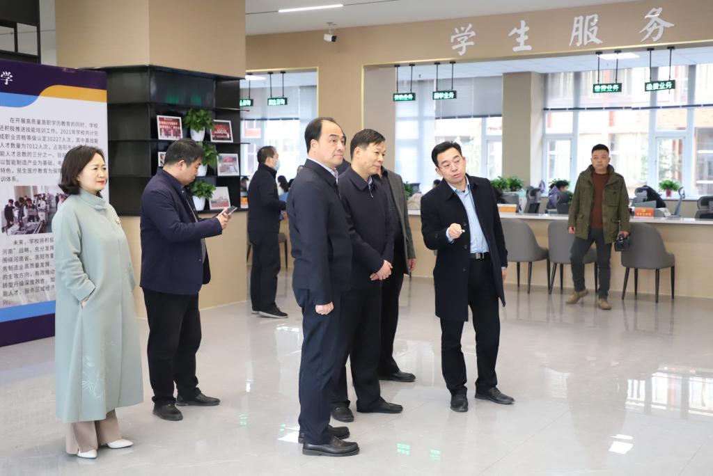李新建实地察看了电子商务学院、电竞实训基地、千蚁新媒体电商直播产业学院、杏园餐厅,对学校专业建设、校企合作、产教融合模式取得的成绩给予了高度评价。他表示,洛阳学校立足区域经济发展,作为扎根河洛大地的唯一一所民办大学,坚持特色办学,不断提升育人质量,为区域经济建设和社会发展作出了重要贡献。同时,对学校的统战工作予以肯定,并对下一步工作提出了要求:做好统战工作的政策理论研究,通过统战工作凝聚更多党外人才,为推动我市统一战线事业创新发展作出应有贡献。他强调,学校要进一步加强思想政治引领,坚持社会主义办学方向,落实立德树人根本任务,把思想政治工作贯穿教育教学全过程,持续培养合格的社会主义建设者和接班人。